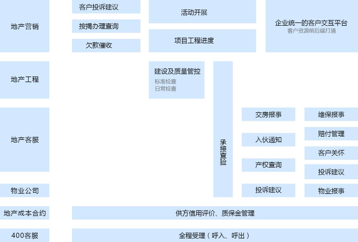 面向客戶為主的功能應(yīng)用,實現(xiàn)客戶與開發(fā)商的實時交互、及時掌握客戶關(guān)心的質(zhì)量問題